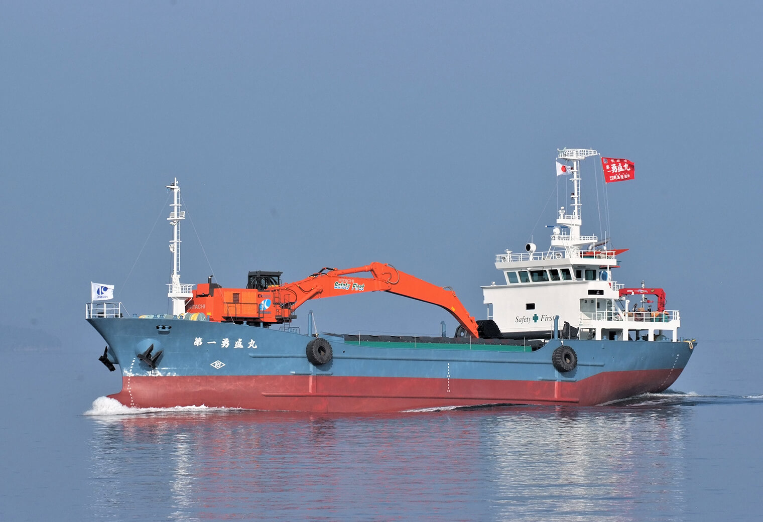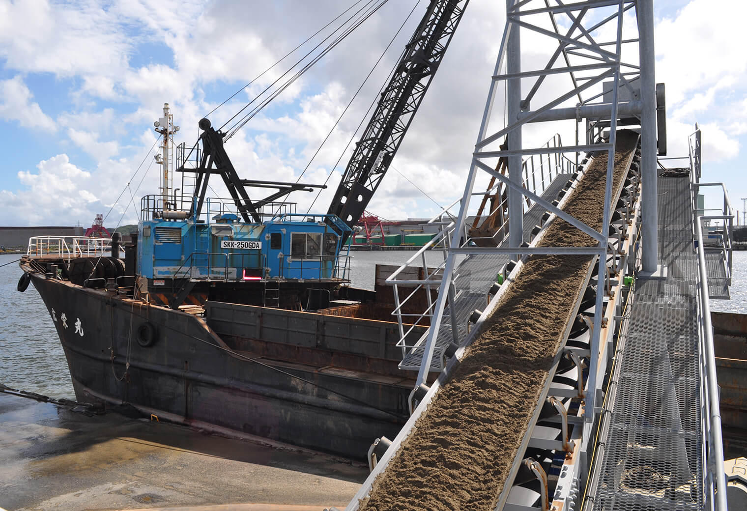 昔から海路は大変重要な輸送手段として用いられてきました。当社は専属船7隻を擁し、京葉・京浜エリアを中心に砂・砕石の運搬を行っています。船1隻では1500トンの運搬が可能です。海上輸送により大量の砂・砂利を安全に、迅速にお客様のもとへ届けることが私たちの大切な仕事です。